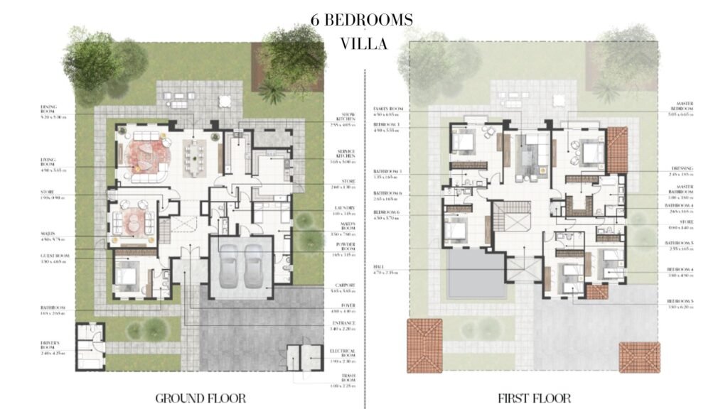 Three to six bedroom villas provide spacious indoor and outdoor living, offering privacy and comfort for families seeking refined residential living.